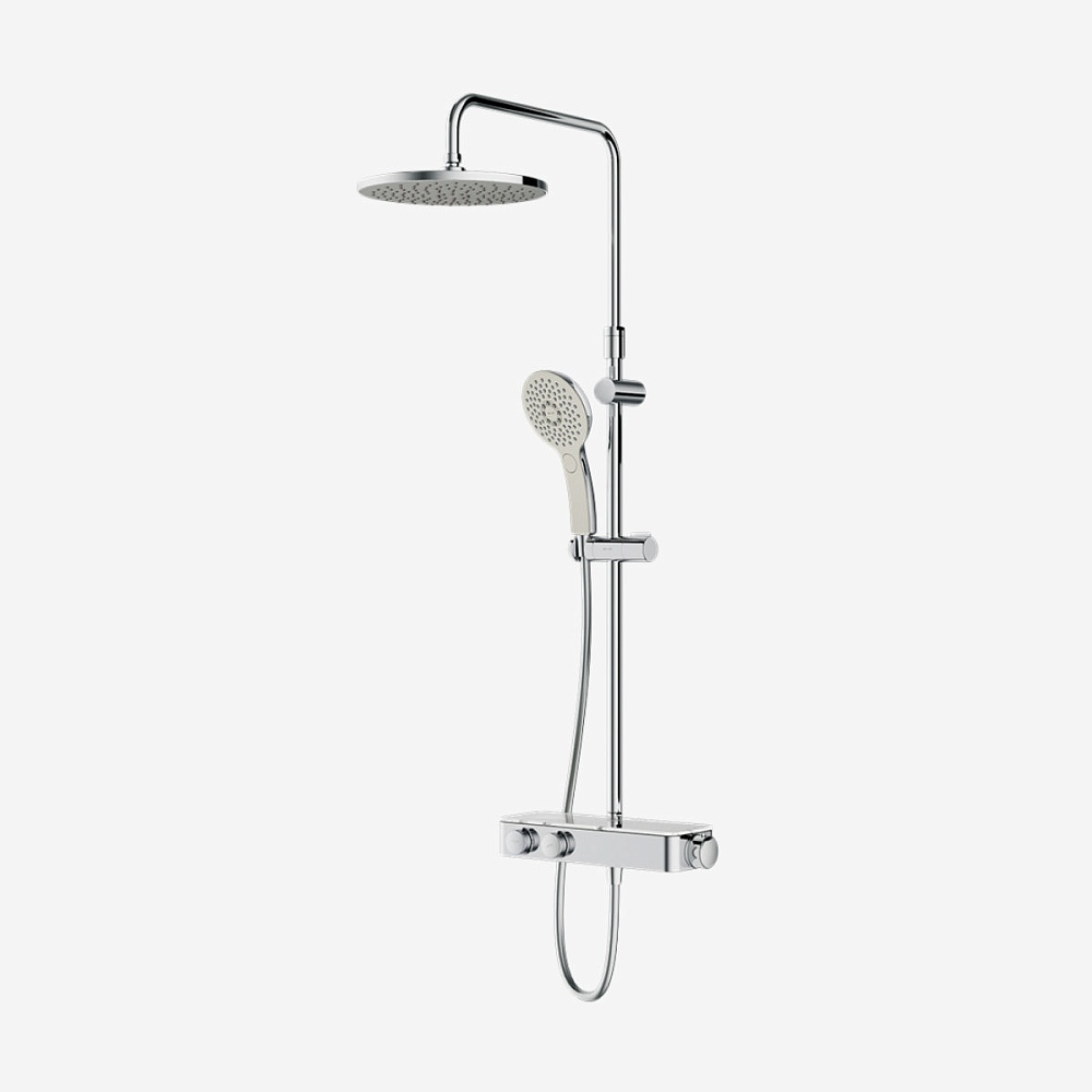 Душевая система Inspire V2.0 – это новый уровень удовольствия от принятия душа благодаря возможности индивидуальной настройки. Вы можете управлять верхним и ручным душами с помощью удобных контроллеров, расположенных на передней панели. Включайте воду легким нажатием, меняйте напор плавным поворотом ручки – и наслаждайтесь идеальным душем снова и снова, ведь система запоминает выбранные вами параметры. Продукт оснащен термостатическим смесителем для поддержания неизменной температуры воды. Верхняя часть смесителя выполнена из глянцевого стекла и является интегрированной полочкой для нужных мелочей при приёме душа. Удивительно тактильный ручной душ за счёт материала поверхности soft touch.