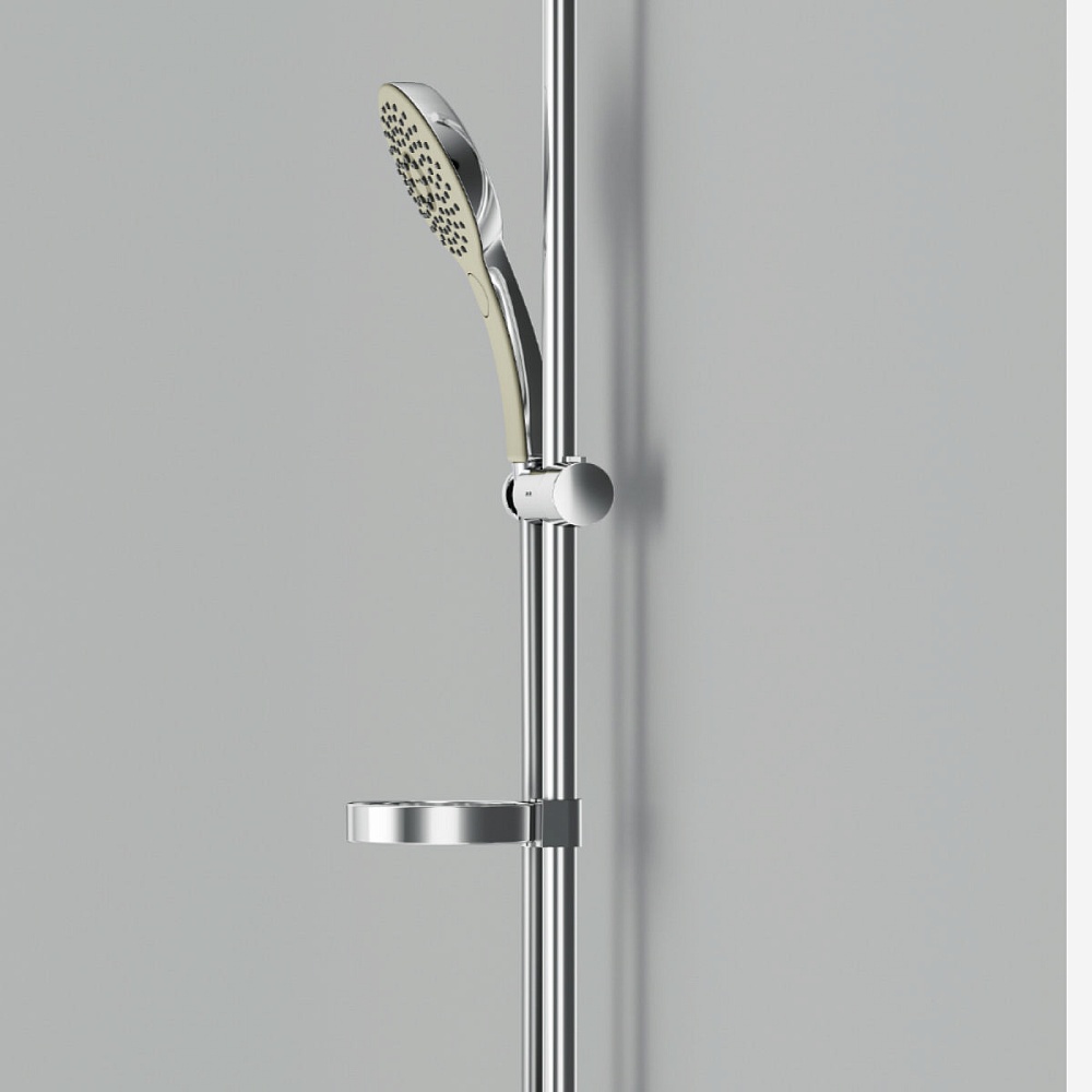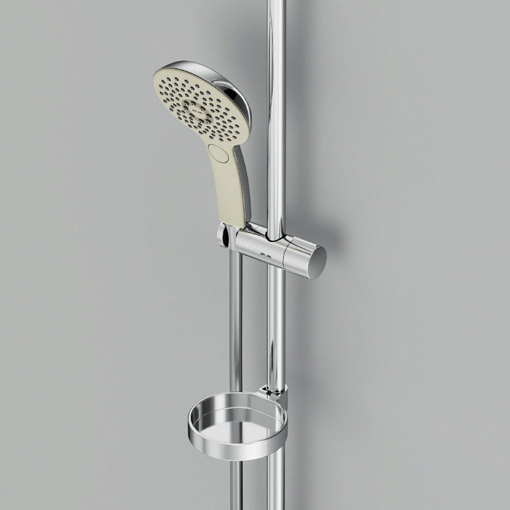 Минималистичный дизайн Hi-Tech/ Эксклюзивный слайдер AM.PM: для фиксации необходимо всего пол-оборота; Три режима ручного душа: Spray, EnerJet, Spray + Massage. Удивительно тактильный ручной душ за счёт материала поверхности soft touch.