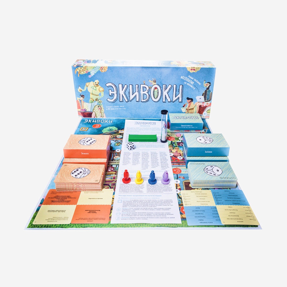«ЭКИВОКИ» - настольная игра для компании от двух до шестнадцати человек, в которой нужно объяснять друг другу слова семью самыми разными способами. начале игры перед участниками раскладывается игровое поле, представляющее собой двухэтажный дом с чердаком, куда и нужно попасть командам.