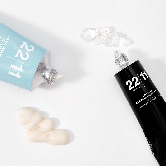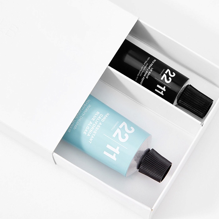 Набор 22|11 в минималистичной белой упаковке станет отличным подарком для тех, кто ценит натуральность в уходе за собой.
