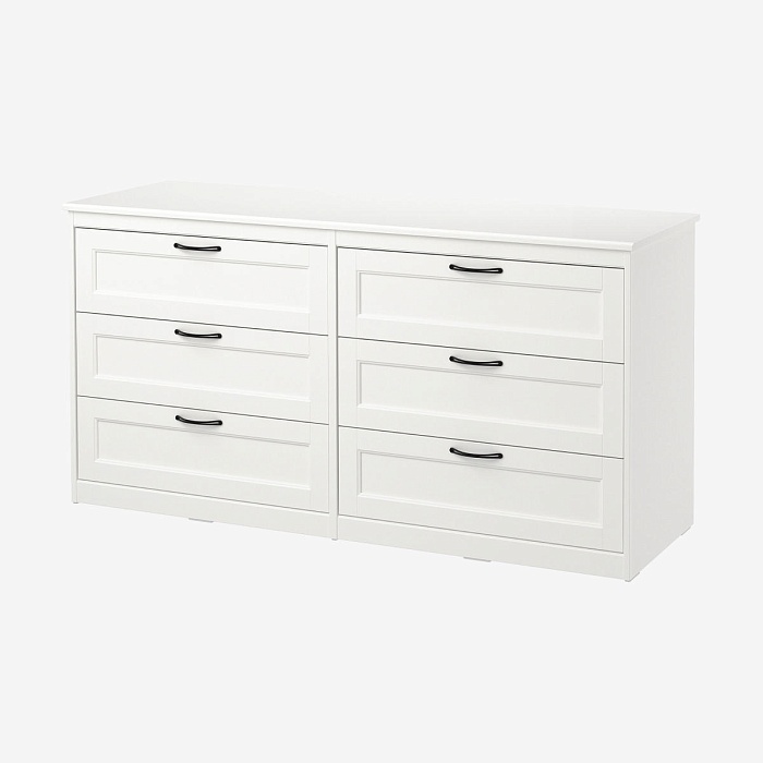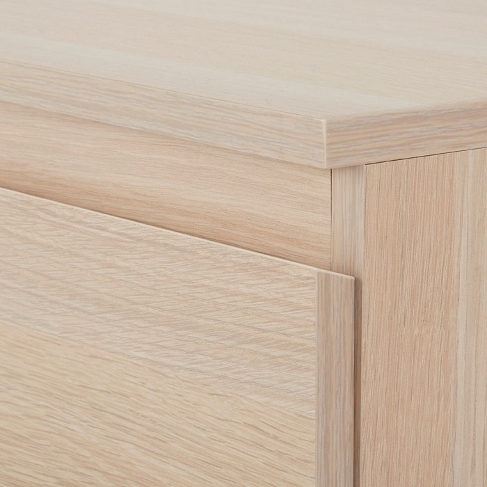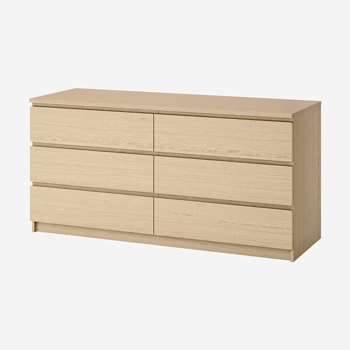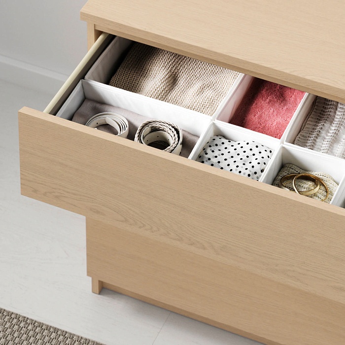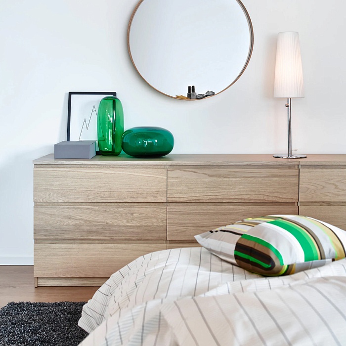 Ваш дом должен быть абсолютно безопасен для всей семьи. Именно поэтому крепеж безопасности для фиксации комода к стене прилагается. Для организации внутреннего пространства можно дополнить набором из 6 коробок СКУББ. Чтобы ящики не выпадали при открывании, они оснащены специальным стопором. Благодаря отделке из шпона дерева этот комод с годами будет выглядеть только лучше. ВНИМАНИЕ! ОПАСНОСТЬ ОПРОКИДЫВАНИЯ! Незакрепленная мебель может опрокинуться. Эту мебель необходимо крепить к стене с помощью прилагаемого крепежа для предотвращения опрокидывания. Для различных материалов стен требуются различные крепежные средства. Используйте крепежные средства, подходящие для материала стен в вашем доме.