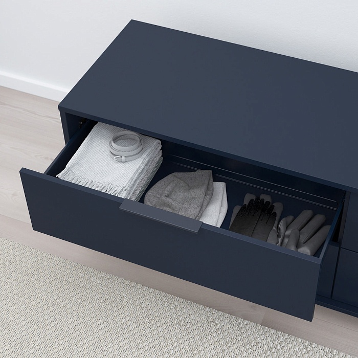 Ящик вмещает около 10 пар сложенных брюк или 20 футболок.