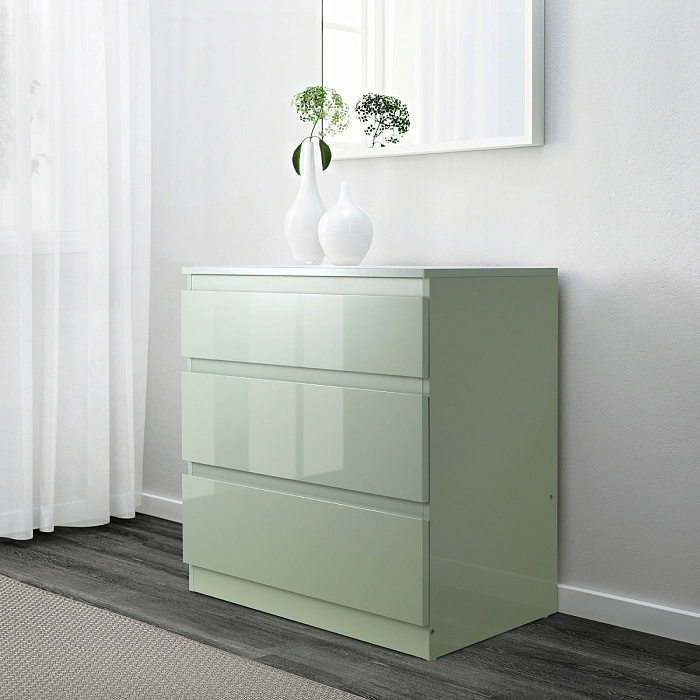 Классический дизайн с филенчатыми фасадами никогда не выйдет из моды. Выдвигая утром ящики, вы не нарушите сон своих близких, т. к. ящики открываются и закрываются плавно и бесшумно. Не забудьте прикрепить мебель к стене!