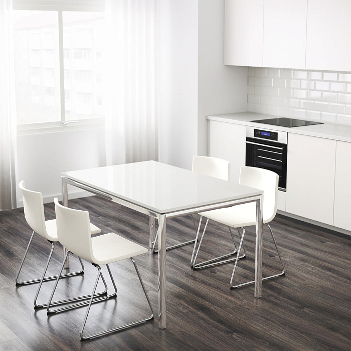 Комфортная для глаз матовая поверхность, плавная форма и достаточно места для ног, чтобы сидеть за столом было удобно. Часть коллекции ОМТЭНКСАМ, в которую входят эргономичные товары, созданные с особой заботой.
