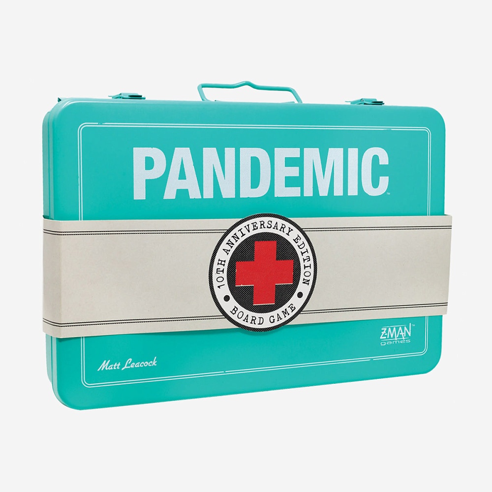 Pandemic — это совместная командная игра, в которой элитная команда по борьбе с болезнями должна держать в страхе четыре смертельных заболевания. Каждый член команды будет иметь определенные способности. Например, Ученому нужны только четыре карты одного цвета для лечения болезни, а Специалист по Карантину может остановить вспышки болезней в своем городе и связанных городах. Это специальное юбилейное издание игры с большими идентификационными карточками и пластиковыми фигурами полностью погрузит вас в роль вашего персонажа, чтобы спасти человечество.