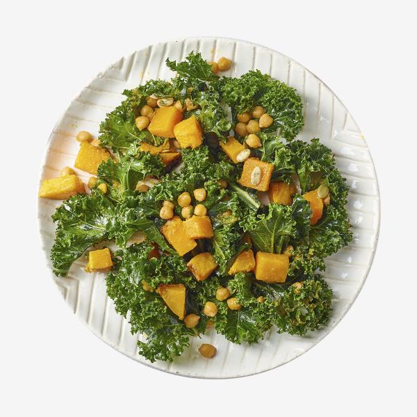 Яркий салат из печёной тыквы и хрустящего кейла с итальянскими травами