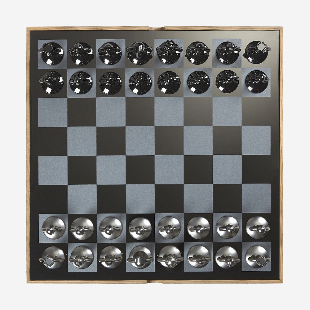 Набор из шахматной доски и необычных шахмат в виде культовых человечков Buddy. Шахматные фигуры выполенены из металла с никелевым и титановым покрытиями и бархатными накладками на основании, которые защищают поле от царпапин. Металлическое шахматное поле заключено в деревянную коробку из натурального ясеня, которая также служит местом для хранения шахматных фигур. Шахматы Buddy станут отличным подарком и для заядлых шахматистов, и для тех, кто просто любит красивые необычные вещи.