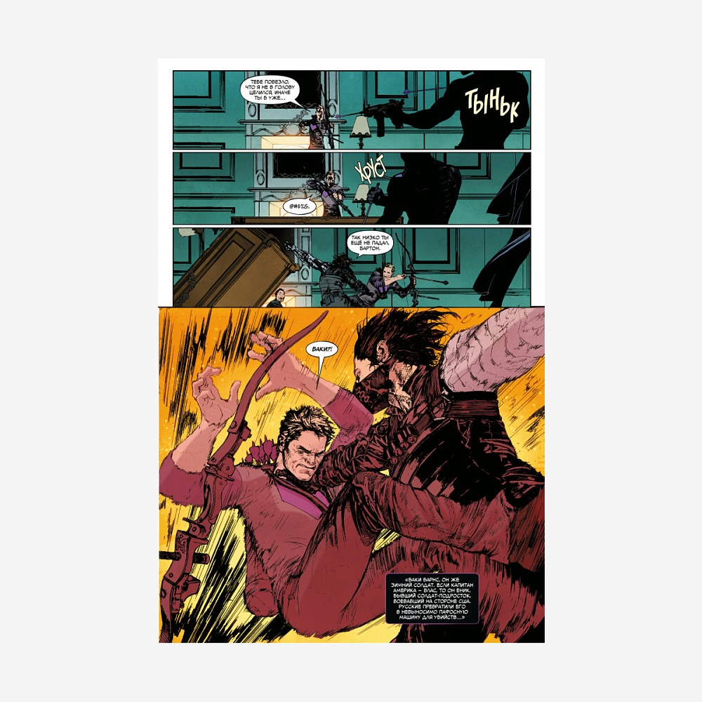 Классическая серия Marvel возвращается, чтобы рассказать историю, продолжающую сюжет «Cекретной империи»! Чёрная Вдова мертва… но кто-то убивает её старых врагов одного за другим. Скрывая боль разбитого сердца, Клинт Бартон, он же Мститель по прозвищу Хоукай, идёт по кровавому следу, чтобы разгадать тайну. И ключи к ответу оказываются у другого бывшего Наташи Романовой: Баки Барнса, Зимнего Солдата! Смогут ли Клинт и Баки довериться друг другу, чтобы почтить память Наташи и распутать паутину загадок, оставшуюся после смерти Чёрной Вдовы? Что ждёт их в новой Красной комнате и готовы ли они к этому? На страницах этого комикса вас ждёт лихой шпионский боевик, полный перестрелок и шуток! Ведь в деле серьёзный парень Баки и весельчак Клинт. Они абсолютно разные, но у них есть одна общая черта: оба отлично умеют убивать. Смогут ли остатки "Гидры", только что потерпевшие сокрушительное поражение, выдержать под натиском бывших возлюбленных Наташи Романовой? Смогут ли Зимний Солдат и Хоукай узнать, погибла ли Чёрная вдова на самом деле? И так ли сильно на самом деле они хотят знать правду…