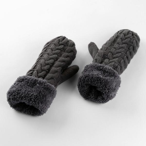 Оснащены уютной подкладкой из флиса. Крупный узор. Отвороты с узором "косичка".